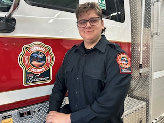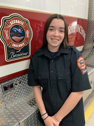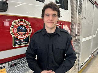 Ce grand gaillard vient de rejoindre cousin, parrain, frère et père à la caserne de Deschaillons! Ses visites et son implication auprès de ses pairs ont débuté en poussette et le voilà officiellement à l'embauche du service, un rêve devenu réalité pour ce grand rêveur.